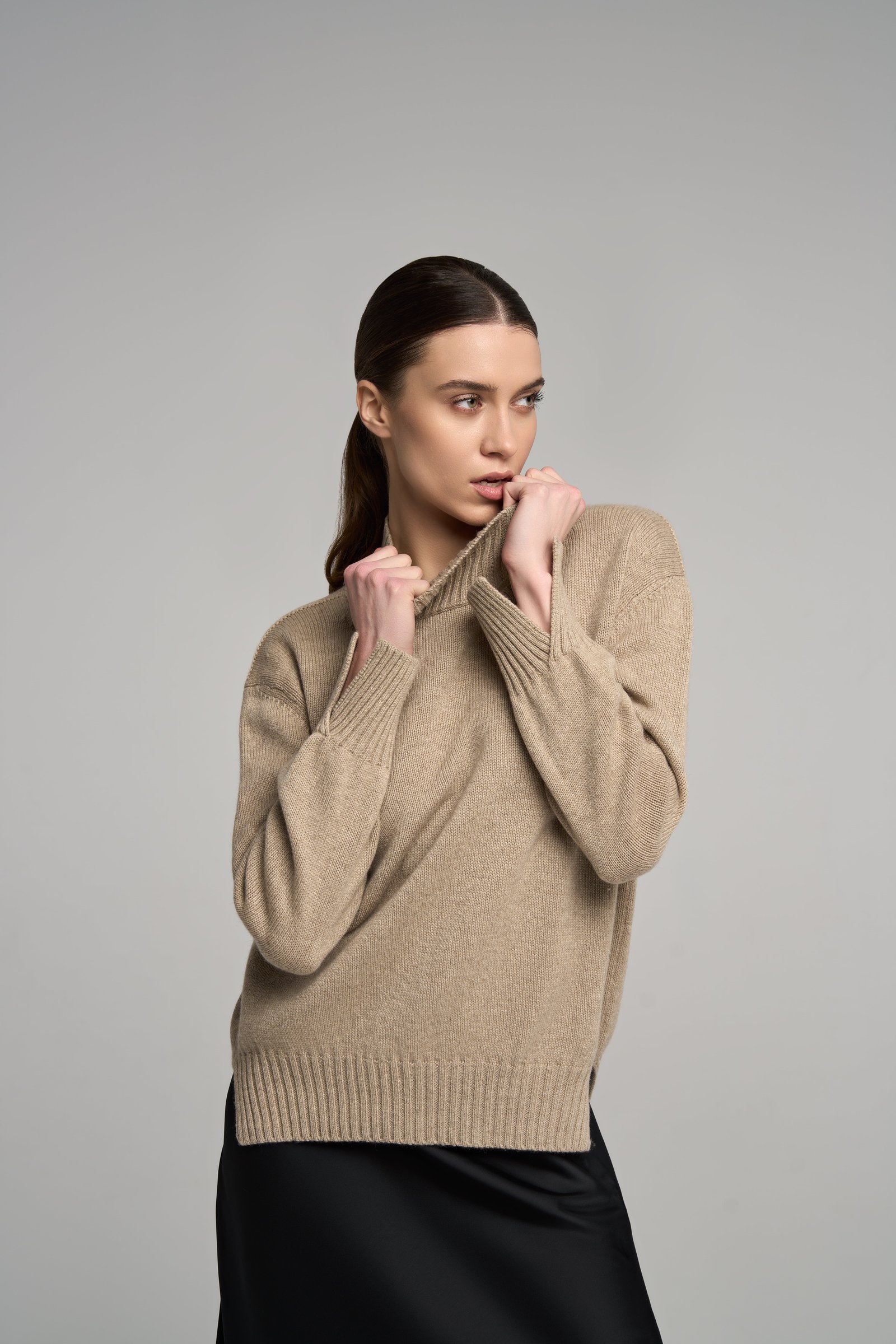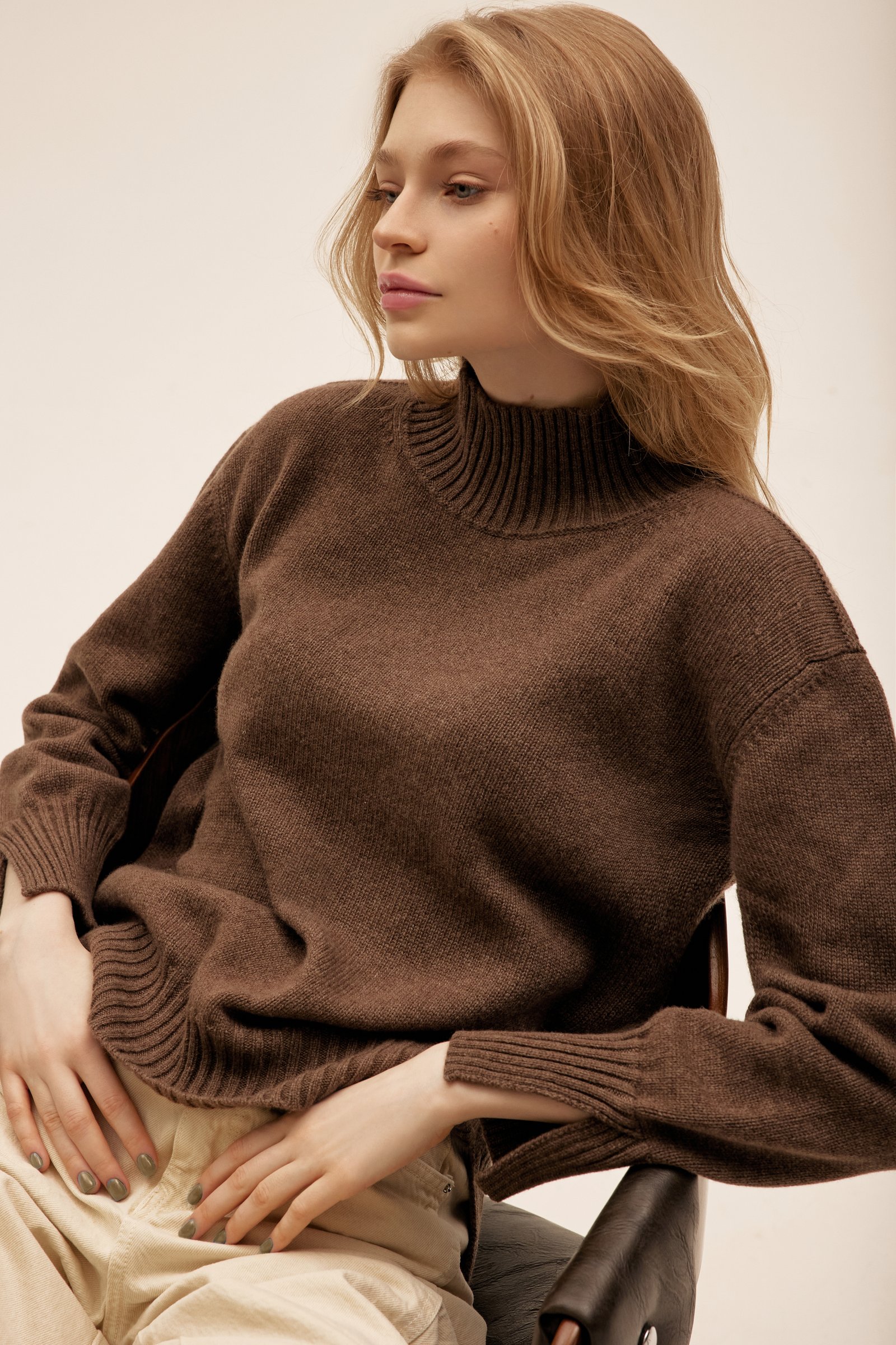 Turtleneck is a luxurious and stylish addition to any wardrobe. Made from the softest and highest quality baby cashmere fibers, this turtleneck sweater offers a cozy and comfortable fit while exuding elegance and sophistication.